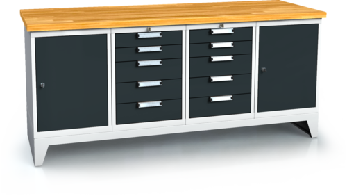 - A mesa de trabalho é feita de aglomerado de faia colado à prova d’água de 40 mm.