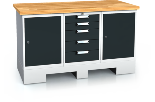• A mesa de trabalho é feita de aglomerado de faia colado à prova d’água de 40 mm.