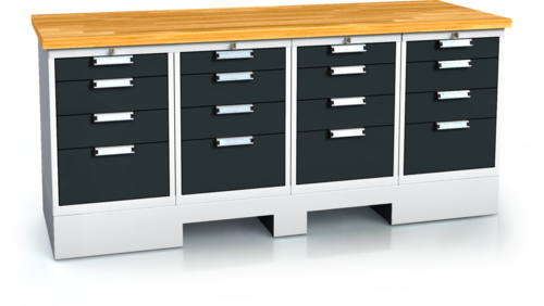• A mesa de trabalho é feita de aglomerado de faia colado à prova d’água de 40 mm.
